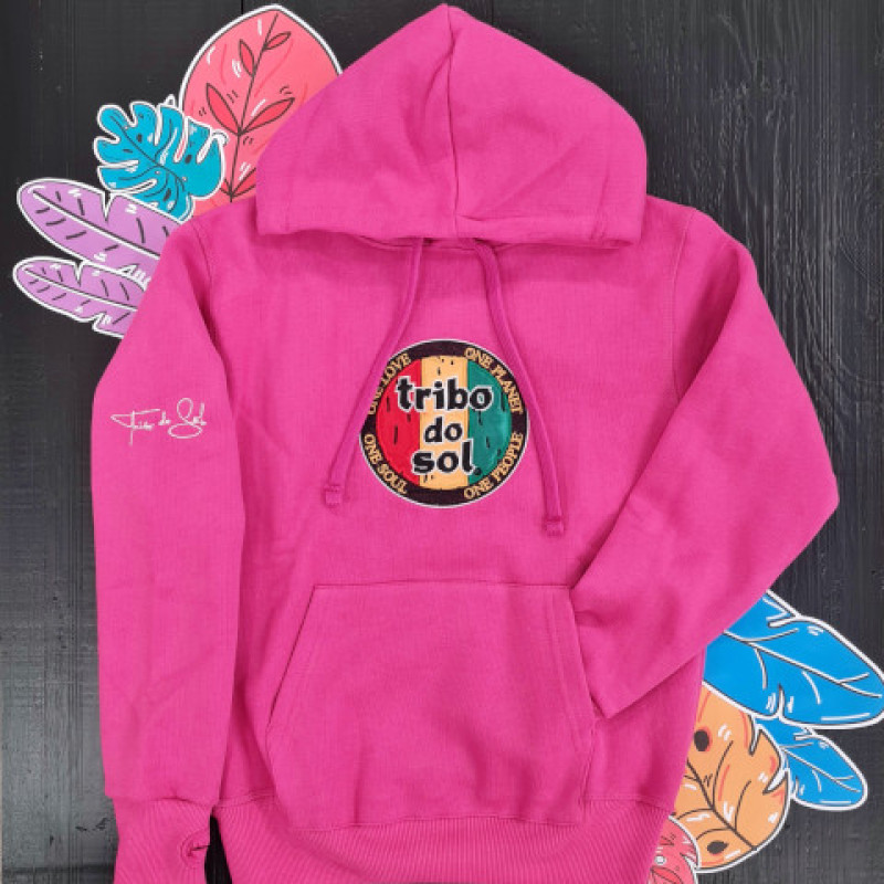 Kanguru com logótipo original Tribo do Sol bordado no peito e na manga.